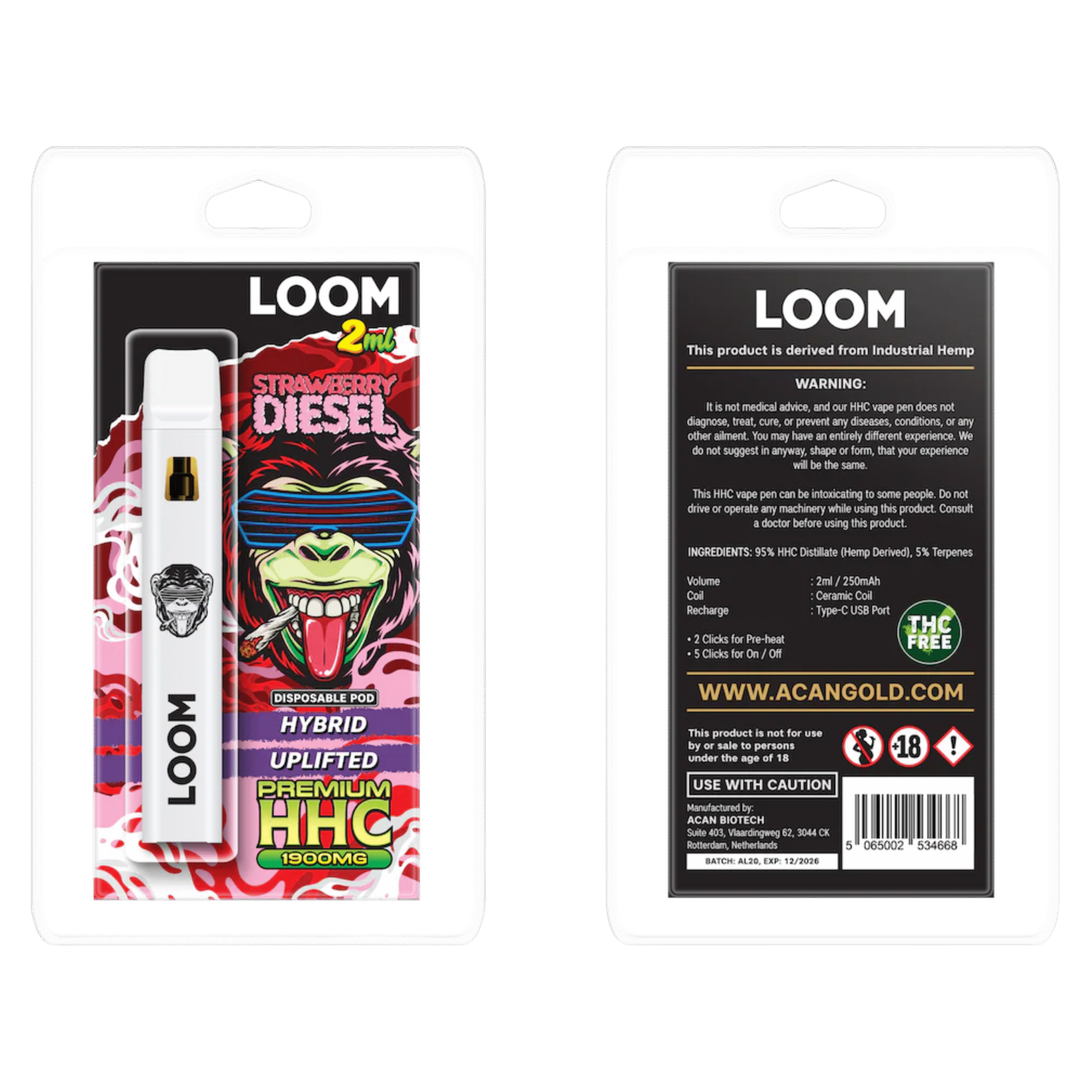HHC is a brand-new hemp-derived compound, with effects similar to Delta-9 and LOOM disposable are extremely popular due to great terpene flavours, users report a nice clear high.